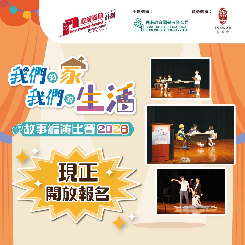 為推動本港語文學習,香港教育圖書有限公司第二年獲語文教育及研究常務委員會贊助主辦「我們的家,我們的生活」故事編演比賽,鼓勵全港中、小學生將家庭故事轉化為文字與表演,透過創作及演繹,提升學生的語文能力及表達技巧,培養他們對語文學習的興趣。