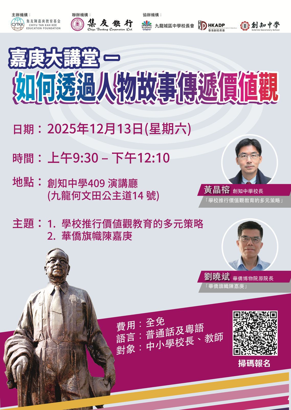 《嘉庚大講堂 • 如何透過人物故事傳遞價值觀》專題講座