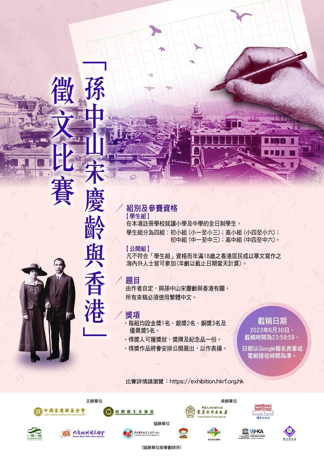 「孫中山宋慶齡與香港」徵文比賽 (截稿日期:2023年6月30日)