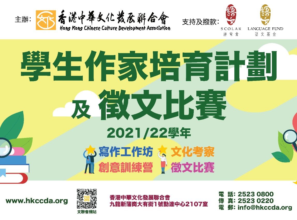 誠邀參與《學生作家培育計劃及徵文比賽》(2021/22學年)